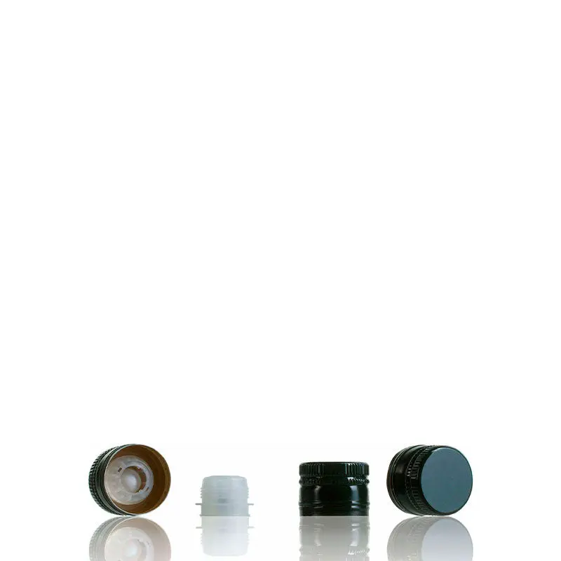 The 31.5 x 24 mm NON-MANUAL Pilfer Proof cap has an integrated pourer and is compatible with our standard glass bottles (Dorica, Marasca, Estefania, Cubana). Its black, green or gold finish gives it an elegant look, while the pourer ensures clean and precise dispensing, preventing drips and maintaining the hygiene of the contents.
